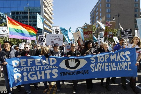 Stop Watching Us demonstration in DC, 2013, photo from the Daily Mail